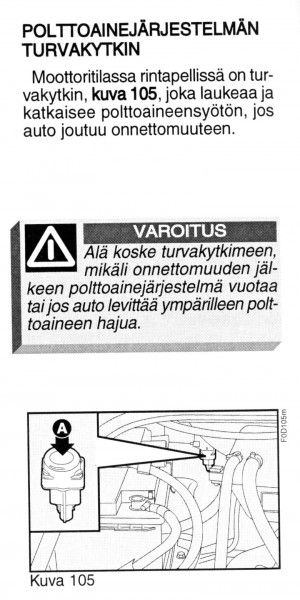 Ihan just löysin ohjekirjasta sähkönapin, jollaisesta en ollut koskaan kuullut. Polttoainejärjestel man turvakytkin.