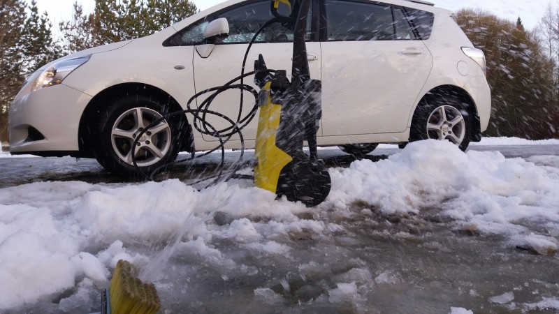Tänään oli päivällä ulkona reilun asteen verran lämmintä. Otinpa ja viruttelin matkakulkimen ulkopuolelta.
