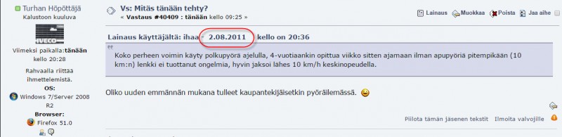 Mitä vanhaa viestiä tarkoitat, tätäkö: Oliko uuden emmännän mukana tulleet kaupantekijäisetkin pyöräilemässä.  ;)
