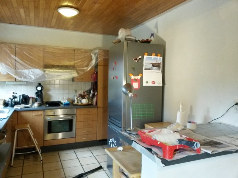 Poistin terassilta lumet. Nyt sopii kattolumet sinne, kun parin viikon päästä katontekijät pudottavat kattolumet.