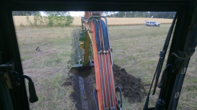 Kaiveskeltu vaihteeks ojia - keskelle heinäpeltoa.