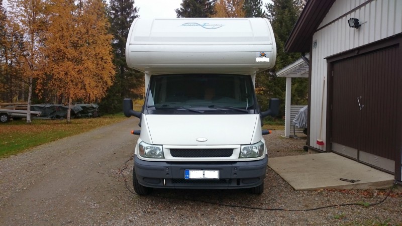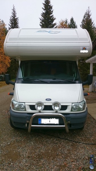 Eikös tuo kierrätys ole tätä päivää? Sian Korentoon ostin uudet lisävalot ja Transuun löysin valoraudan Torilta 80€ hintaan Tampereelta, kaveri toi tänne niin ei kulujakaan tullut. Korennon valot vielä suuntaamatta "oikeasti", Transun valoihin ei tule vielä sähköjä, oli polttiaisia niin pirusti että jätin piuhan vedon sikseen. Olis ollut kolmaskin Bosch Touring Transuun mutta ei mahtunut. Samalla tuli uusittua kierrätetty logo Transun keulaan, orkkiksesta oli värit lähtenyt :D