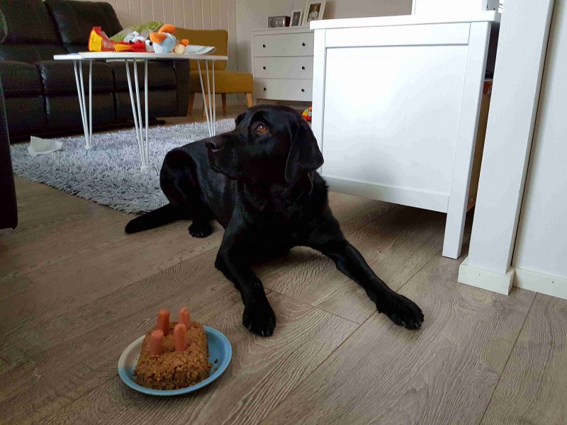 Annettu lähtiessä koiralle 4.v synttärikakku