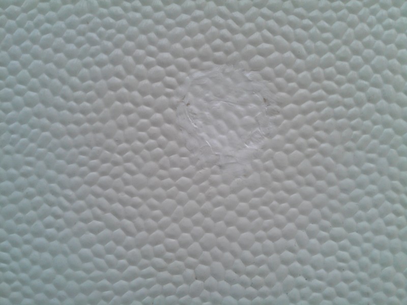 Saa pelti puhkikin olla, liimamassaa kolo täyteen, vasarapellillä kuvio päälle. Pinnat pitää vaan puhdistaa niin, että liimamassa tarttuu varmasti.