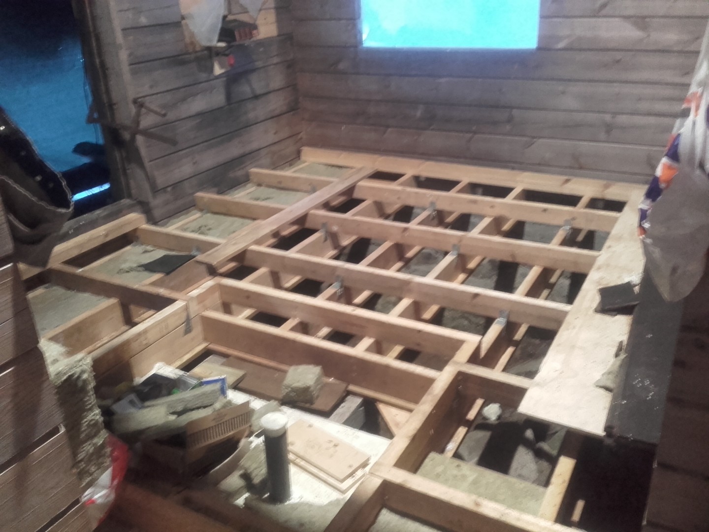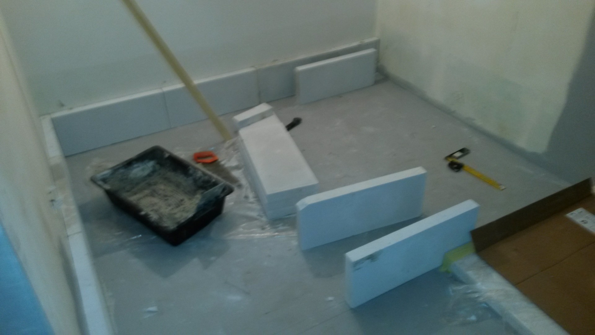 Vaimon ystävätärelle kävin tekemässä seinän alun. Huommenna runko ylös asti ulkopuolen levyineen, niin pääsee laattamies laittamaan vesieristeen ja laatoittamaan.