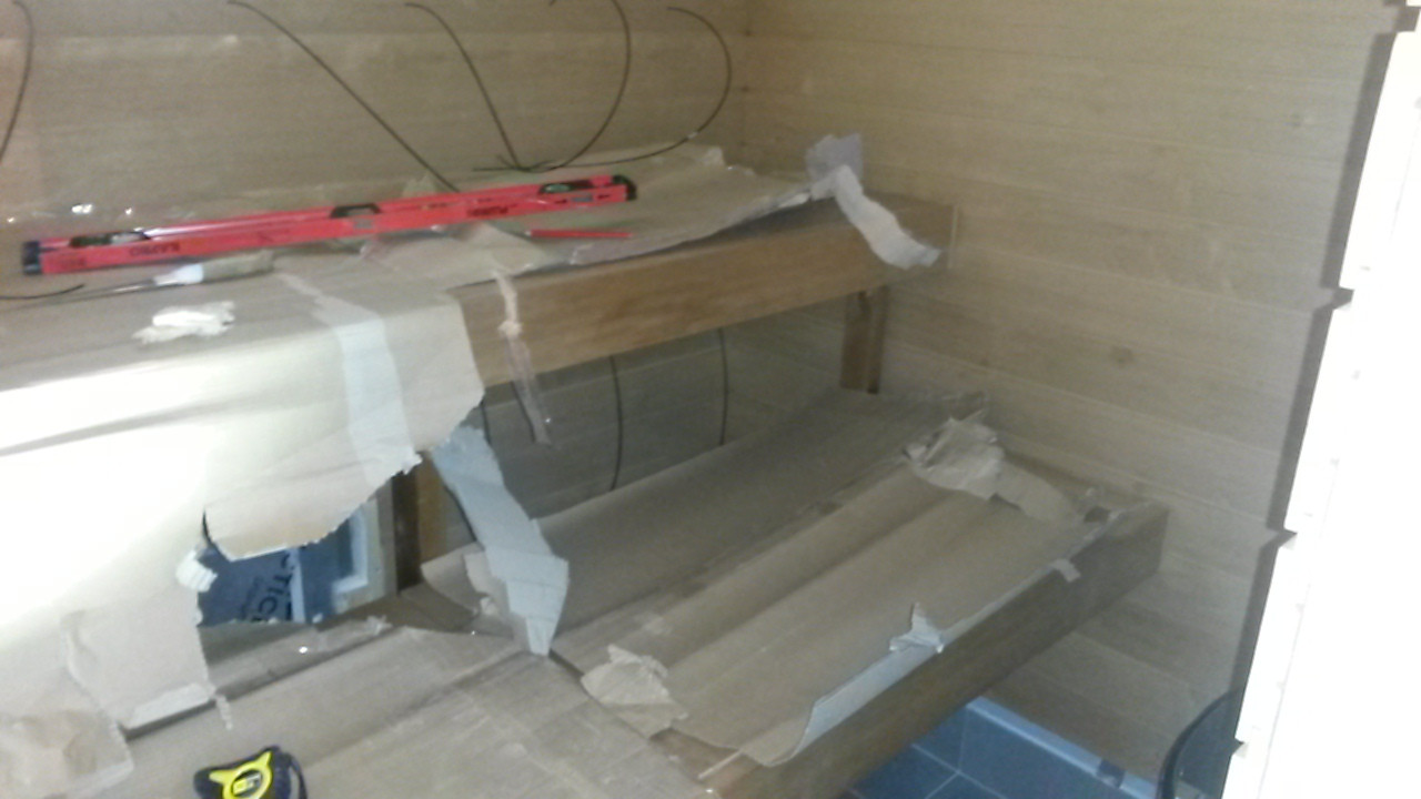 Eipä ne lauteet sais seinissä kiinnikkään olla, jos mitoitettu 1.5 tyhjää puolelleen.. ?