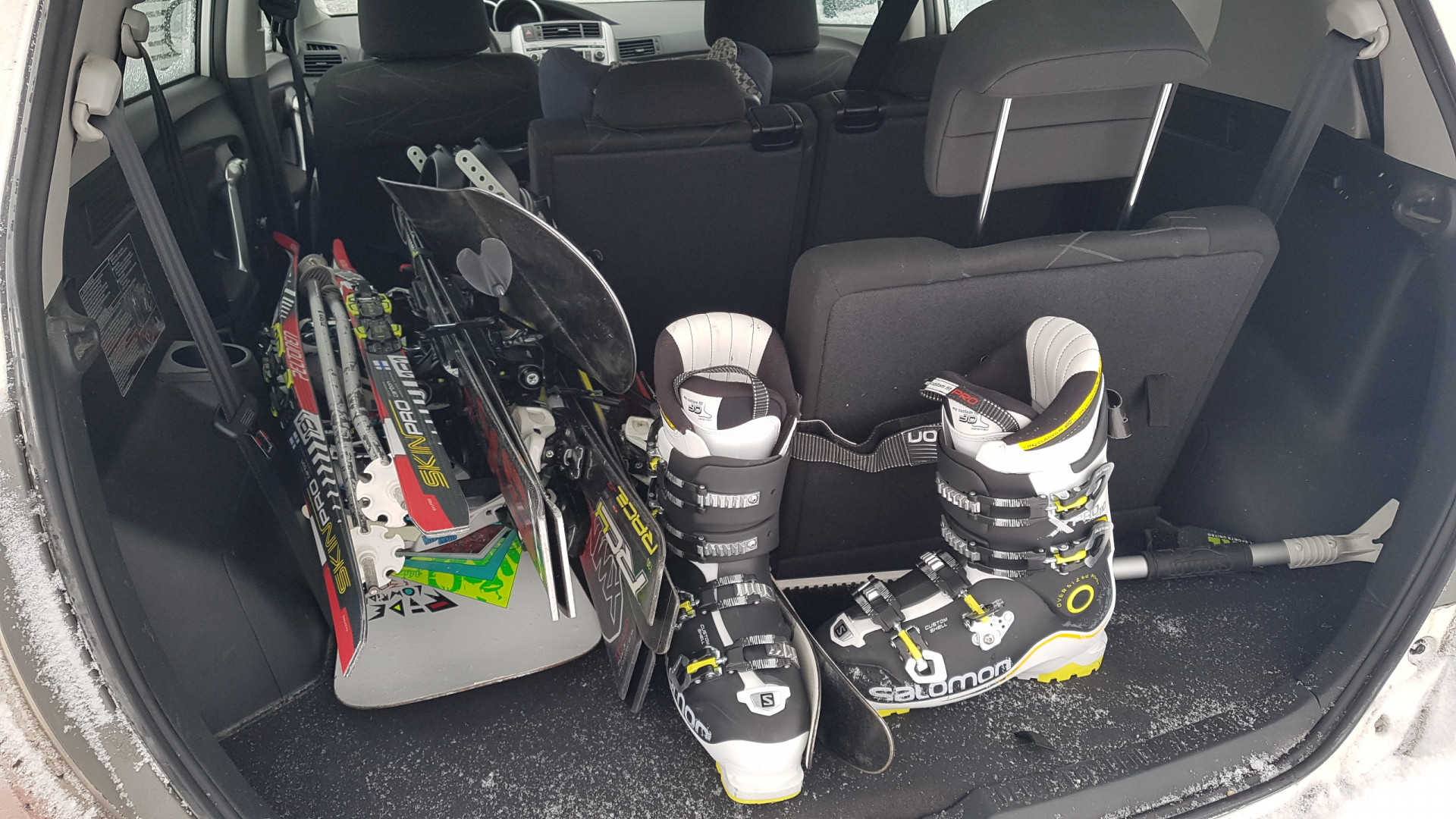 Suksiboksiin nuo (tai sinne peräkärryyn) ja kabiini vain ihmisille.