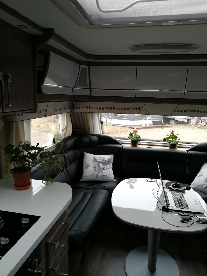 Ei saa isomaksi mutta sovitaan me porukalla siihen, nyt ja vihoviimein tajuttu jotta pienempikin pöytä riittää vaunuun nyt on tilaa liikkua sohva ryhmän ympärillä liikutamatta pöytää.