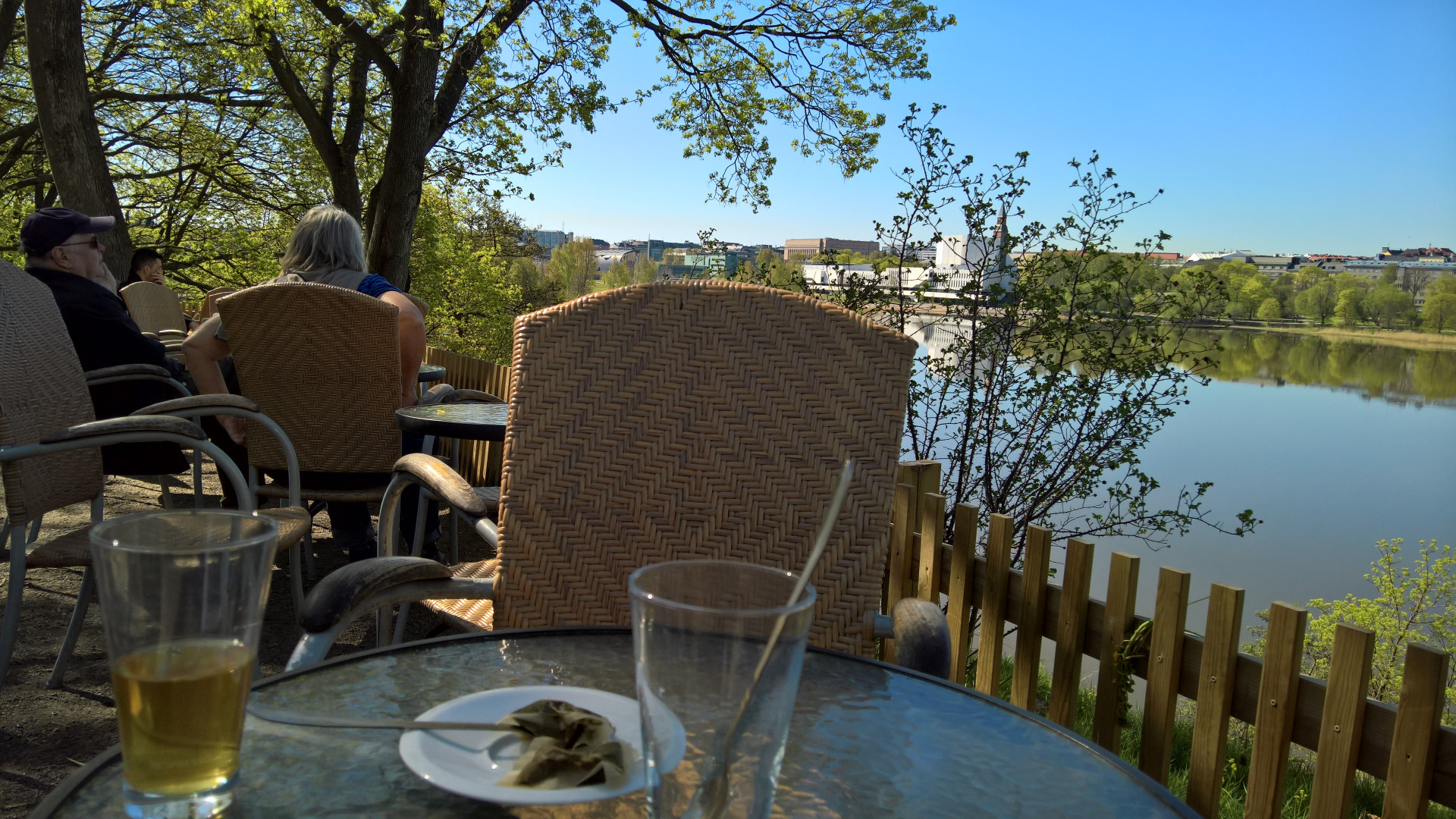 Aamupäiväteelle kävelimme. Römertopf muhii kotona uunissa.