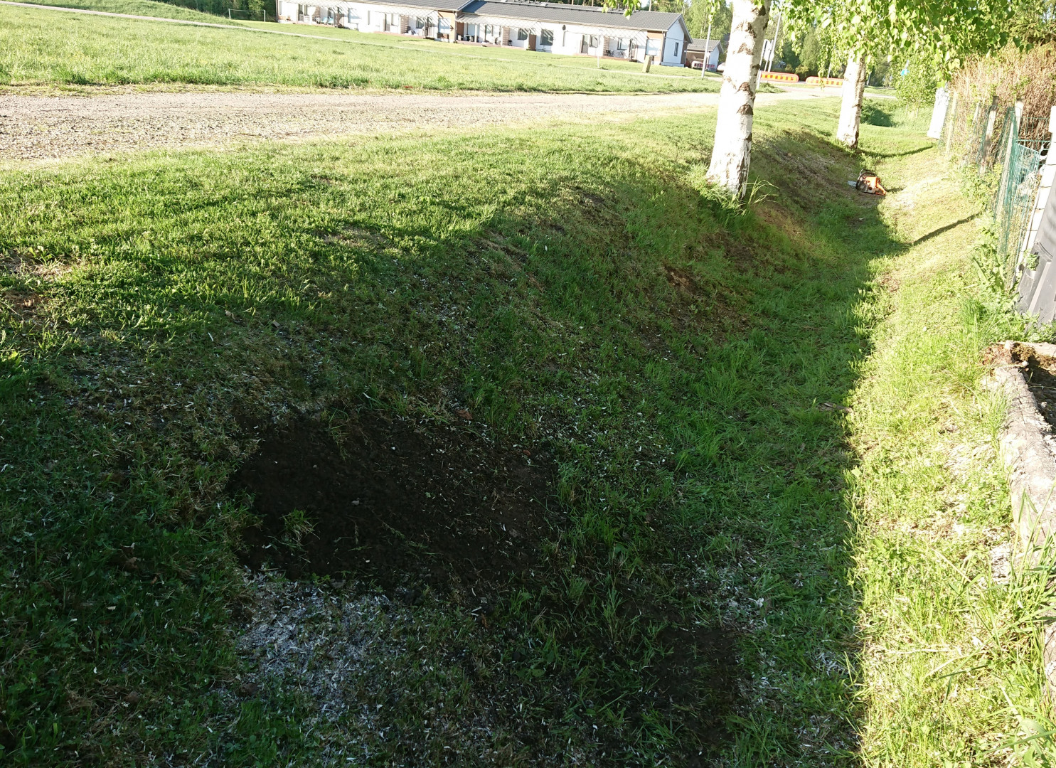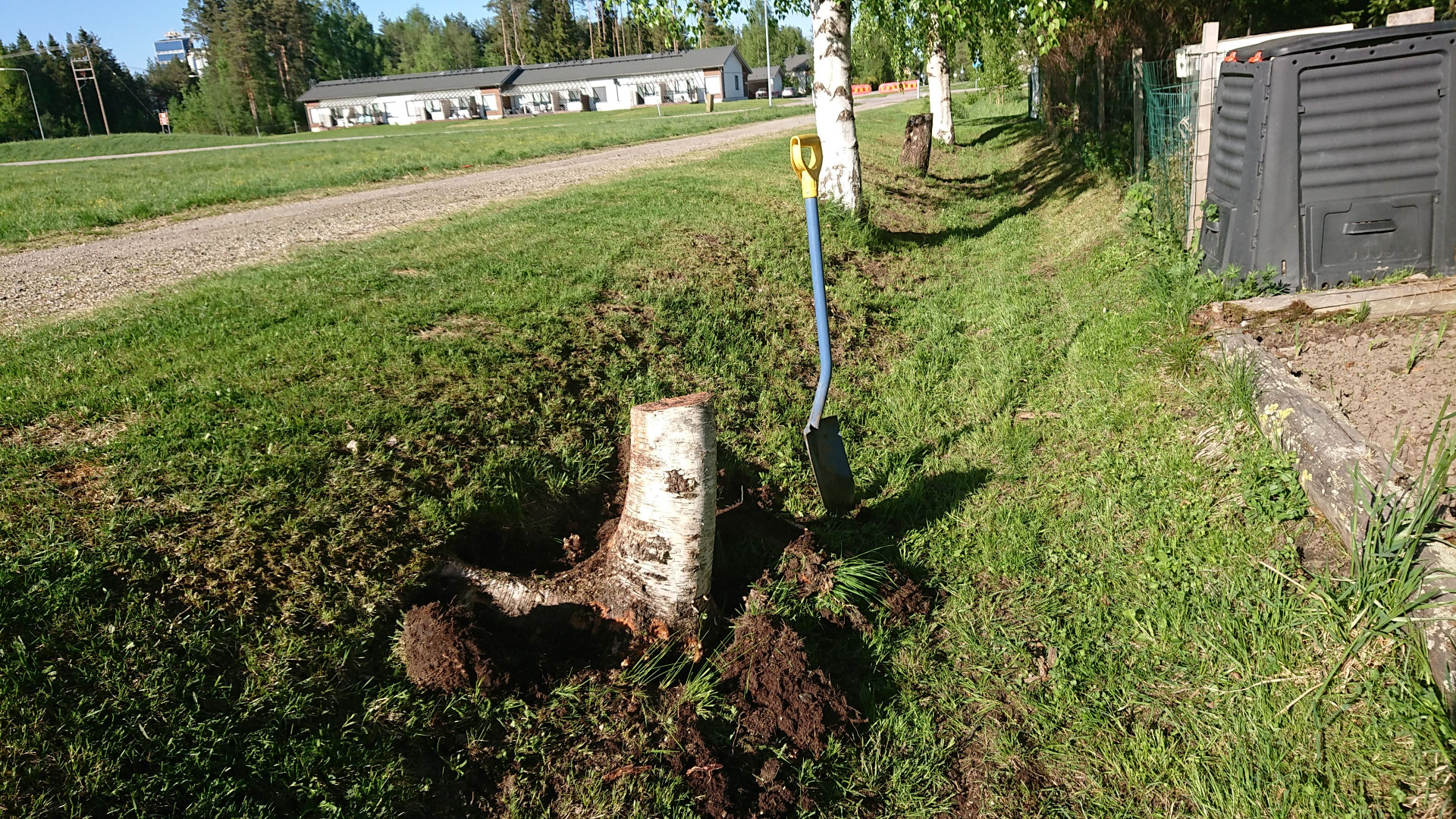 Ruohonleikkuun päälle madalsin pari koivunkantoa, kun on hankala ajaa niistä leikkurilla yli.