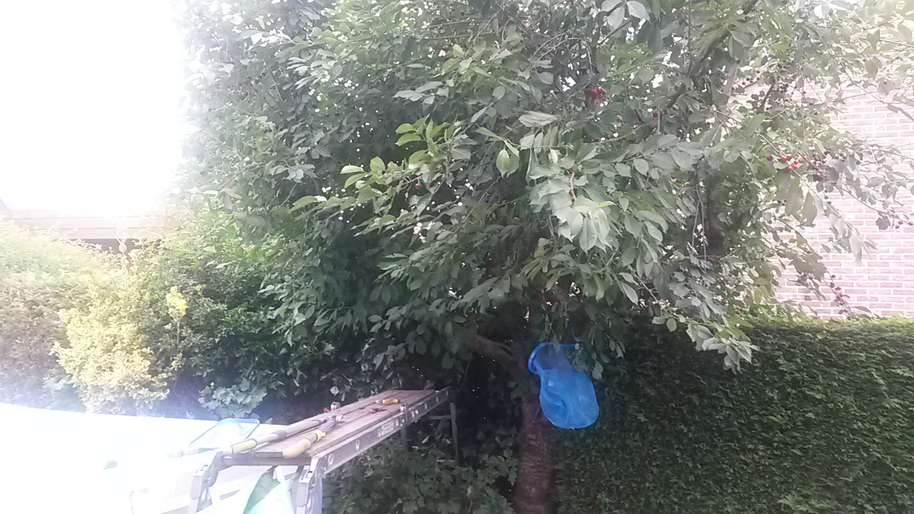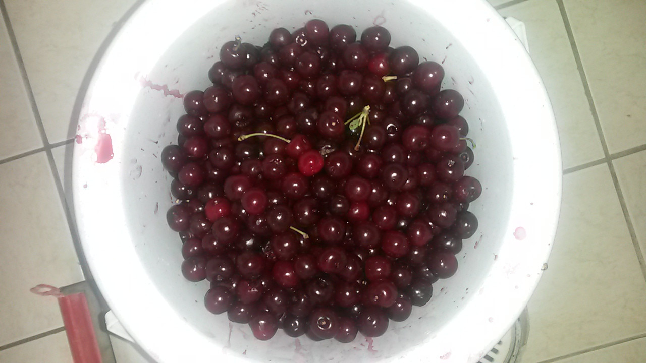 Pari sankollista kirsikoita poiminut, meni ehkä yhteensä 45 min.