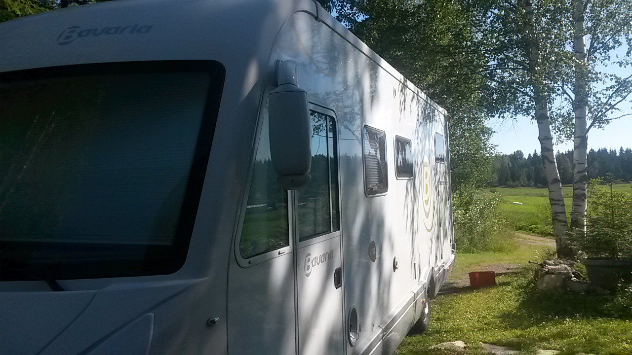 50W aurinkopaneeli tuottaa vielä 21:n aikaan 2A. Auton mittarin mukaan vajaa amppeeri mennään miinuksella.