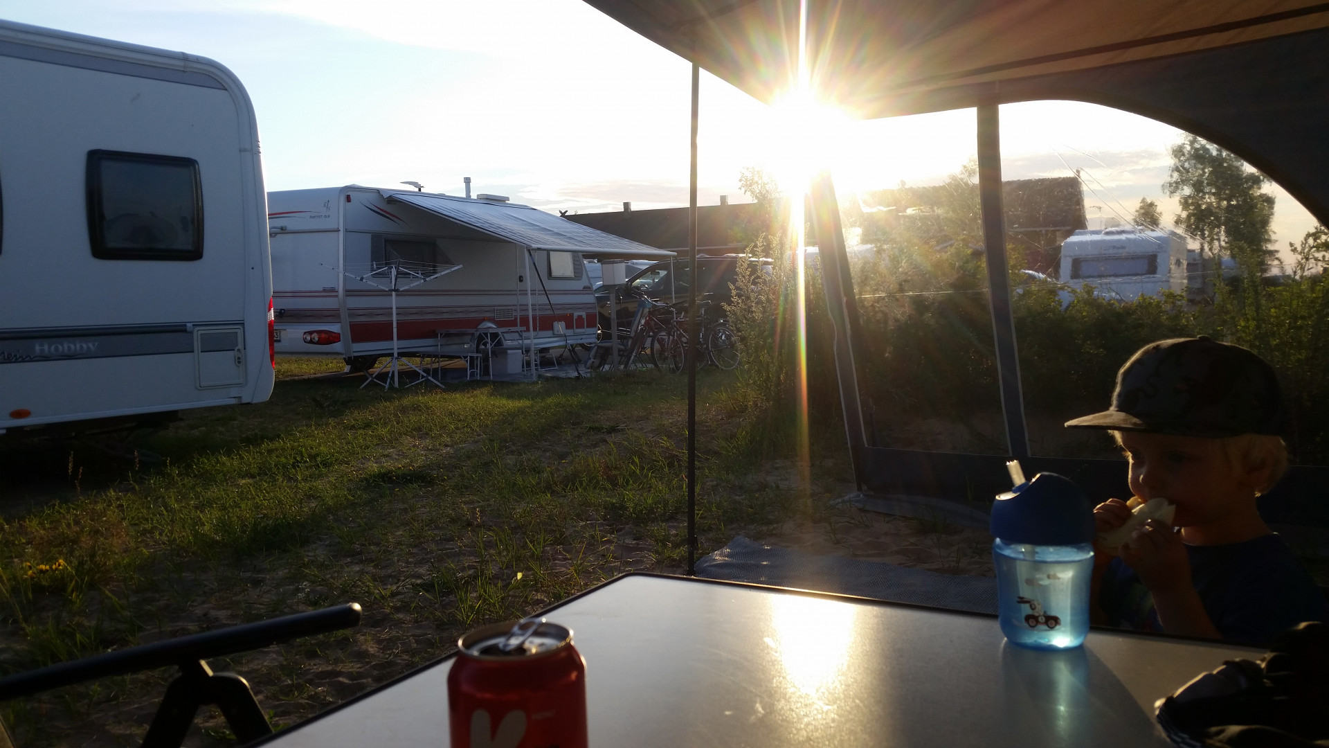 Eilen illalla lähdettiin kesken loman hellettä karkuun ja tultiin kotiin. Meillä ekaa kertaa ikinä vaunuilua yöllä ja itse ainakin tykkäsin ihan kybällä, kerrankin ei tarttenut ajella paahteessa vasta-aurinkoon kuten nuo kotiin paluut usein ovat olleet :)