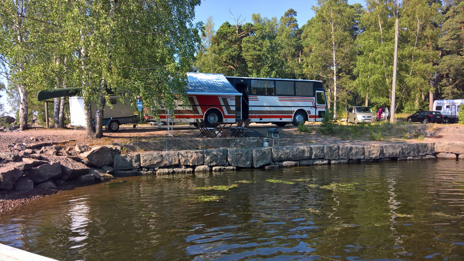 Yritin tilata magneettiventtiilin, ei tainut onnistua. Laitoin kulkimesta jääkaapin jähtymään. Torilla nisukaffeella. Mökillä pientä puuhastelua ja uimista, samalla pulikoin majavan jättämän puun rannasta kuivumaan.