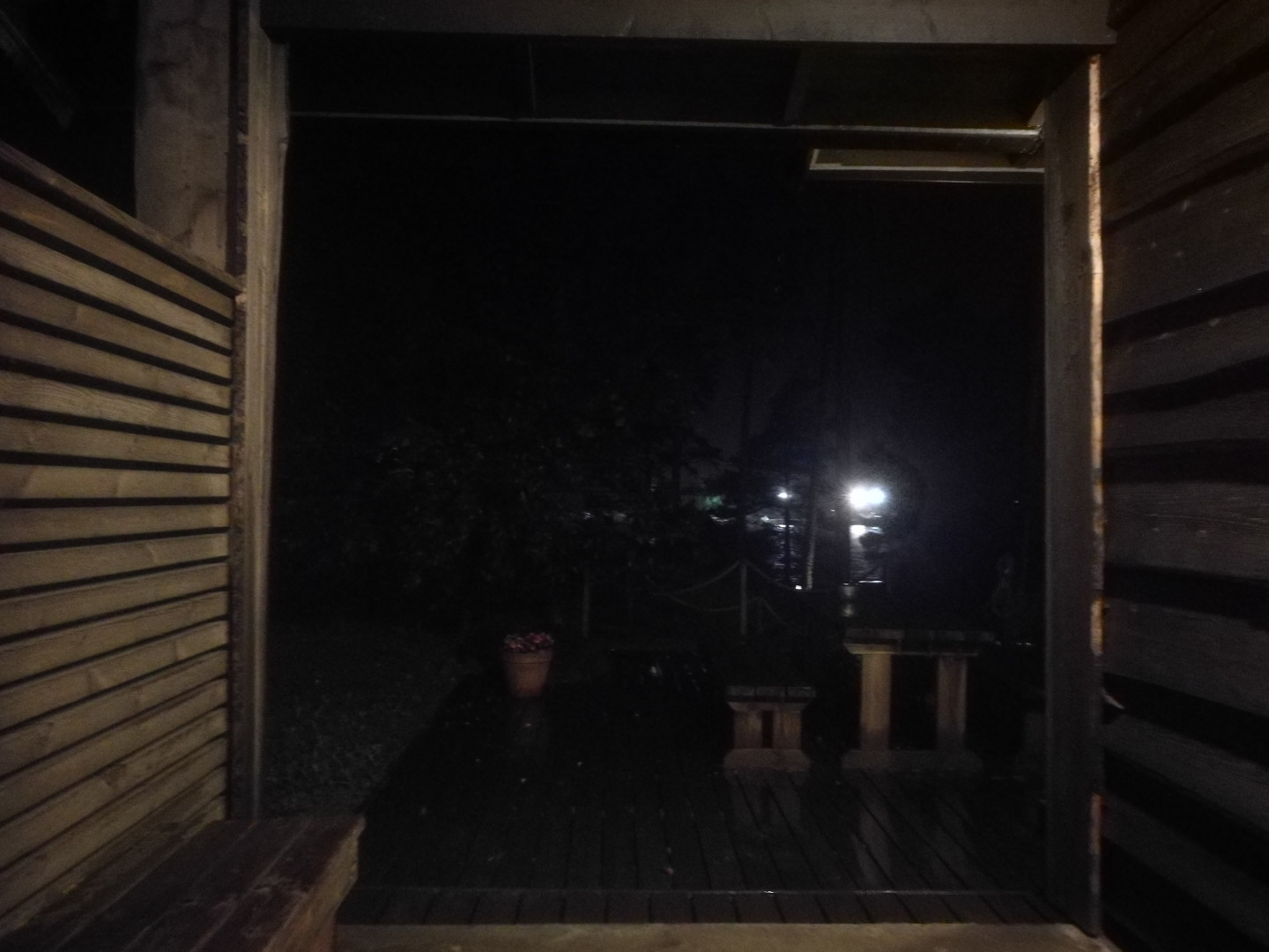 Santalahdessa Saunassa Sataa ja Tuulee: