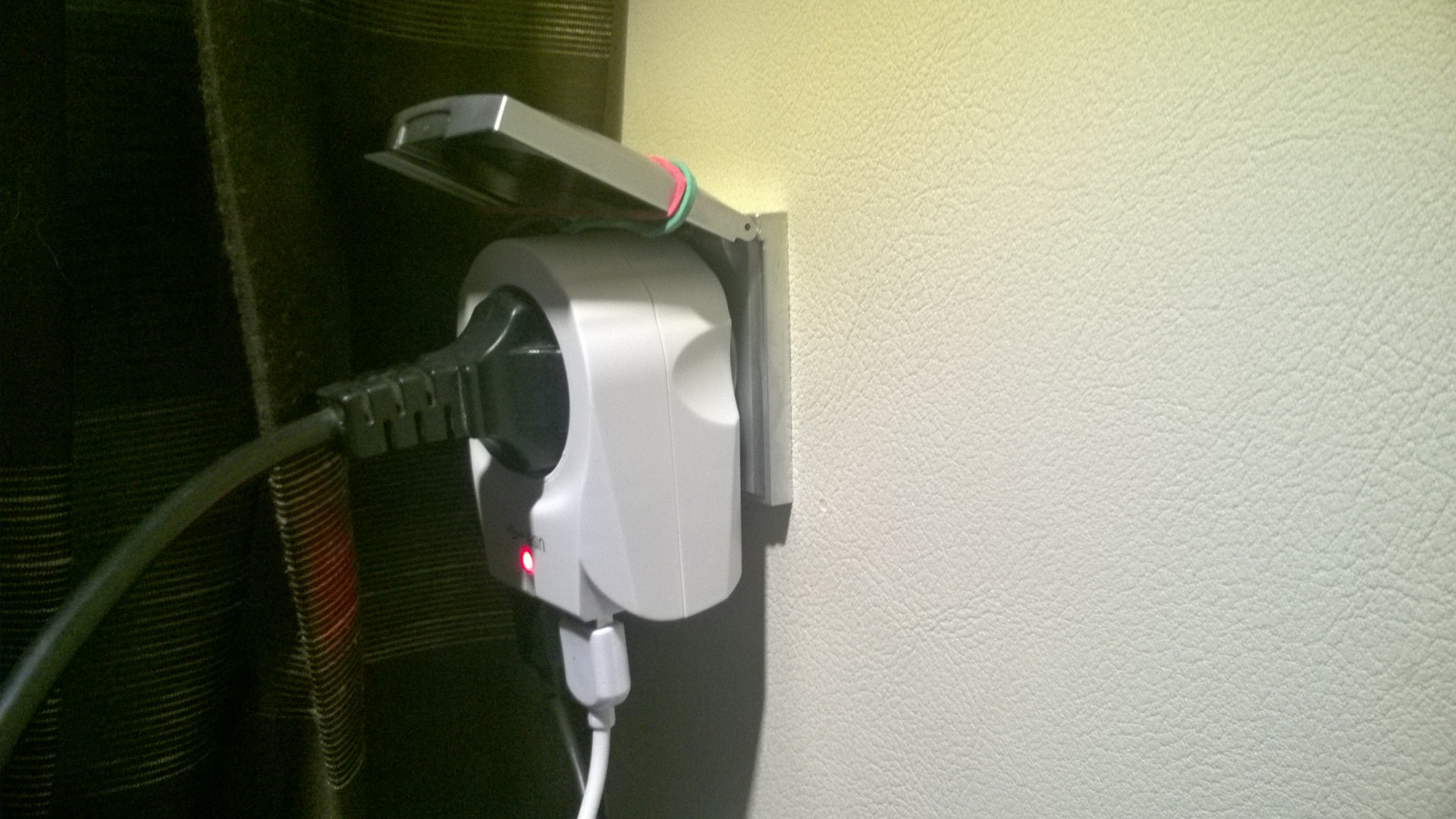 Kun autoissa/vaunuissa on usein liian vähän pistorasioita, niin pidän parempana IKH:sta löytämääni pistorasia/USB-laturia. Se on pistorasiaan laitettava, vaan siitä saa vielä 230V läpi.
