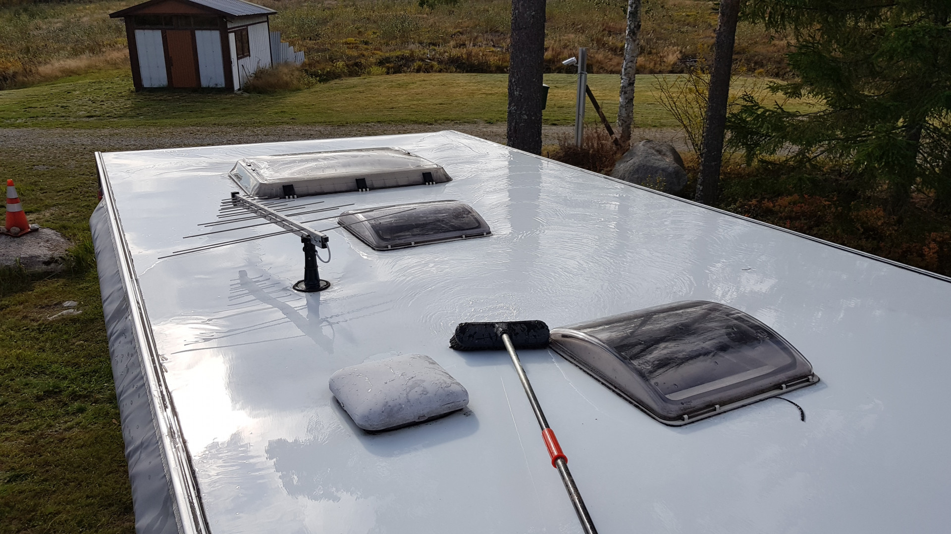 Pesty vaunun katto. Tuuli niin, että vesi meni ylämäkeen😀