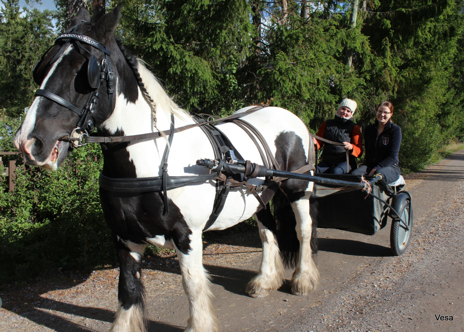Jo tulin, iloisten tyttöjen kera oikein hevoskyydillä.
