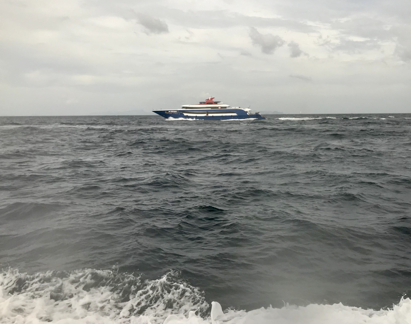 Yksirunkoinen on tämä toinenkin. Ihan vakaata kyytiä, vaikka aallokon perusteella arvioisin viiden beaufortin verran nyt tuulevan.