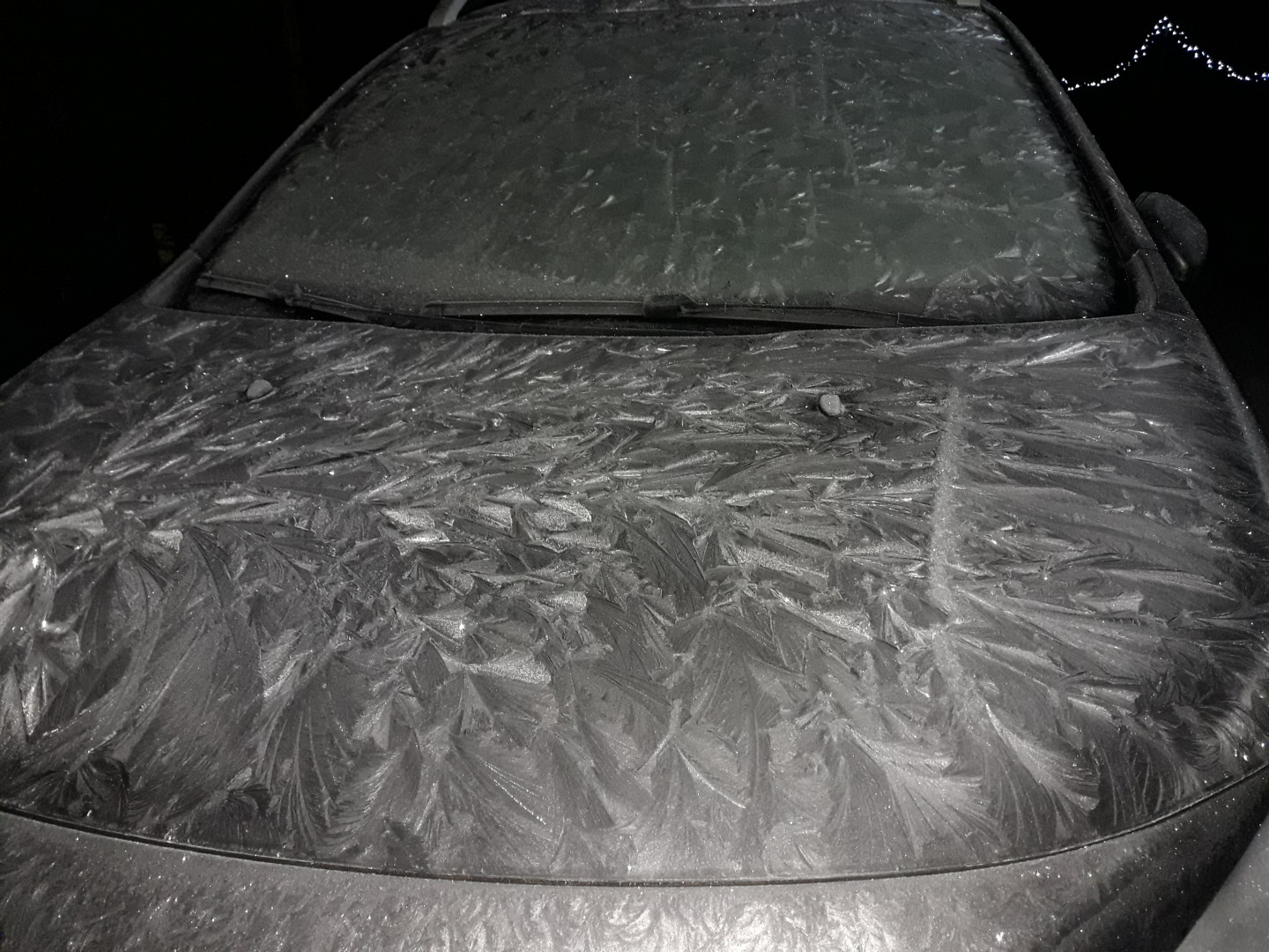 Kylmää on täälläkin, oli pakkanen kuvioinut auton viimme yönä.