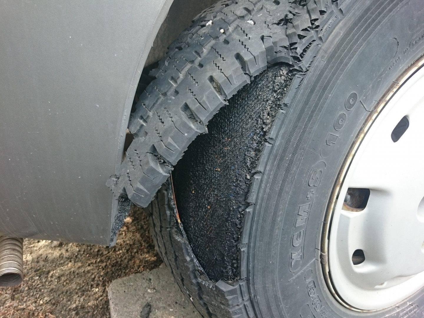 Kuvan on tarkoitus kertoa, että näinkin voi renkaalle käydä. Vaurioriskiä lisää mm. renkaan käyttövuosien lisääntyminen.