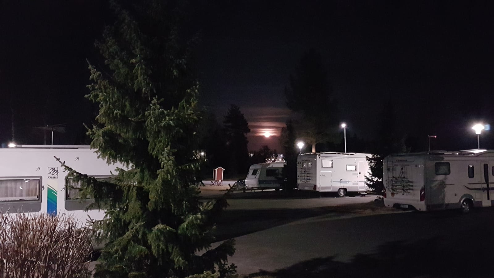 Nyt illasta ihasteltu punertavaa kuuta, jota ei yllättäin saa oikeen vangittua kännykkäkameralla.