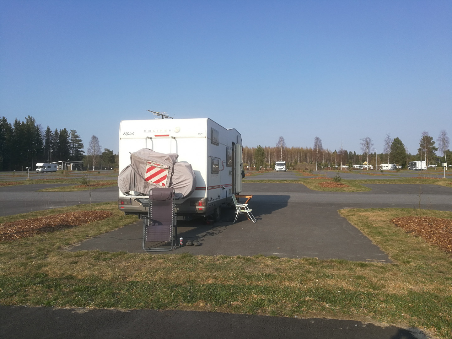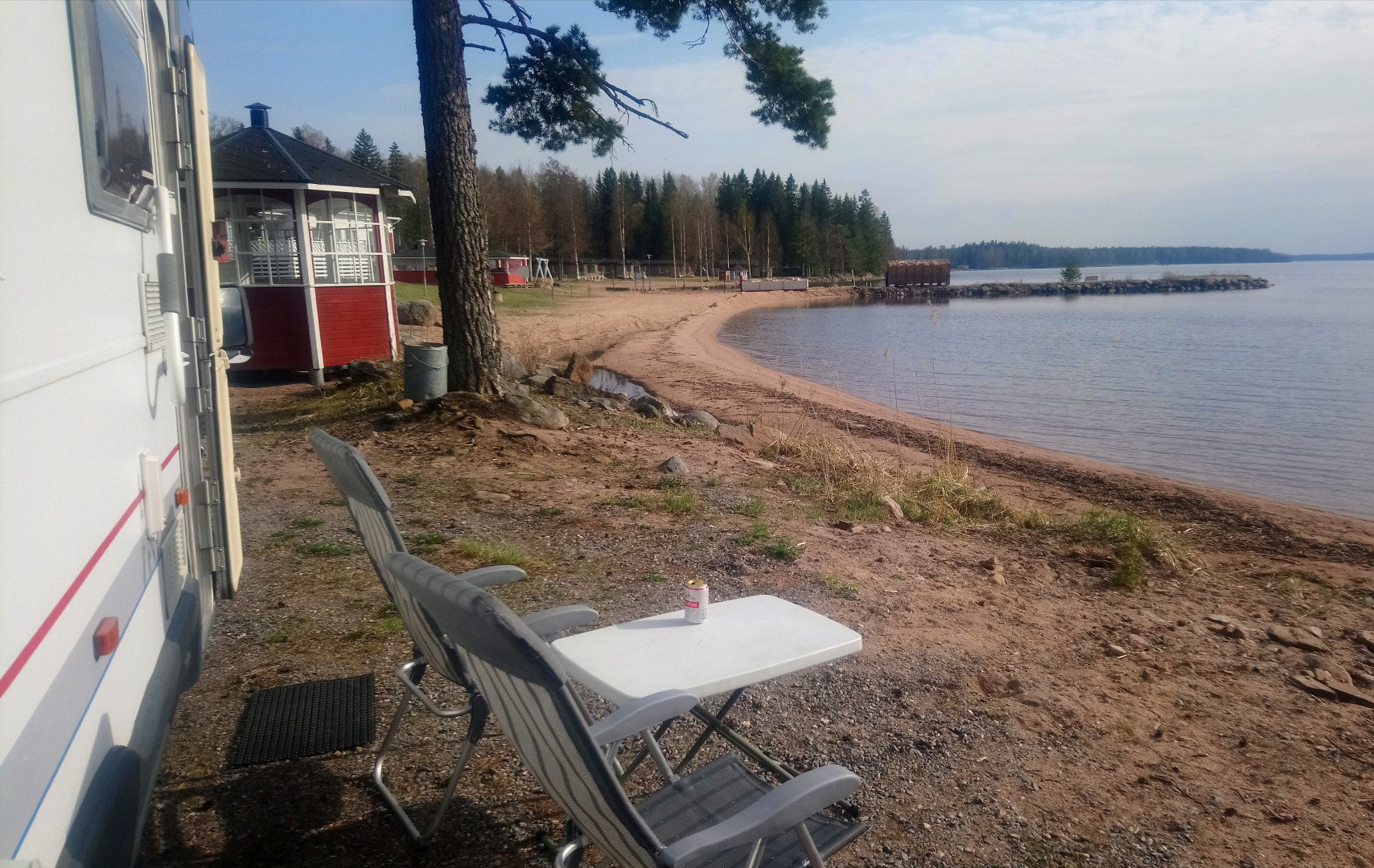 Aamulla ajoin tuolta kaupan parkista Onnelaan ja nyt nautittu lämpimästä aurinkoisesta päivästä virvokkeilla ja tehty tietenkin etätyöpäivä muutamalla palaverilla höystettynä.