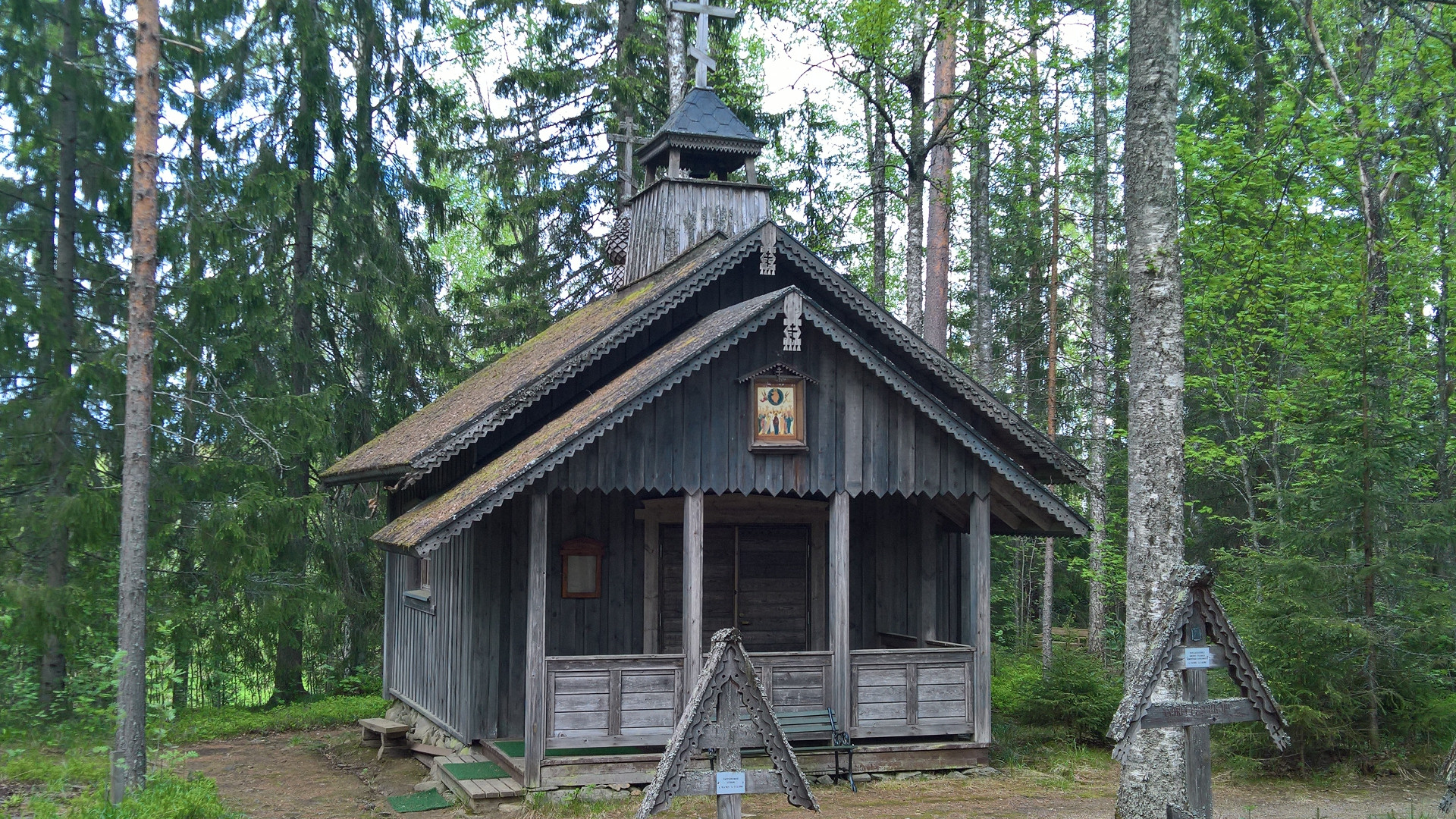 Uuden Valamon hautausmaalla. Siinä 400m päässä hyvä reissuparkki. Nuotiopaikat, pöydät, kemssan tyhjennys, juomavesi. Ja vieressä luostari jossa ravintolaa jne.