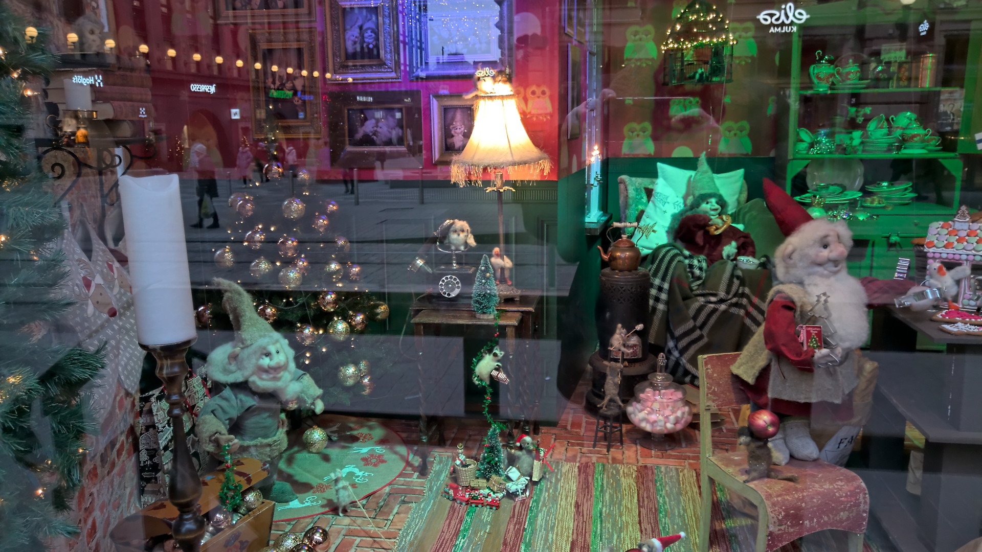Kävelimme joulukatua katsomaan. Stockan ikkuna