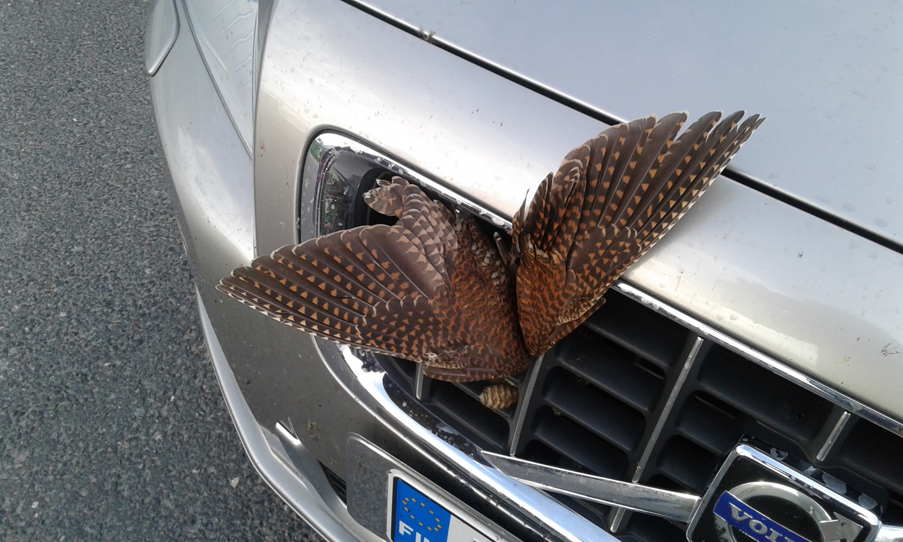 Tuo Volvon säleikkö on aika tukevasti valmistettu. Vauhtia tuon lentäessä eteen. 80km/h ja hyvä, että osui tuohon kohtaan. Pysähtyi auton rakenteisiin ja ei esim jäähdyttäjään