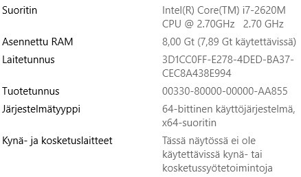 Kai sinne levylle muutakin pitää mahtua, kuin se Win 10....