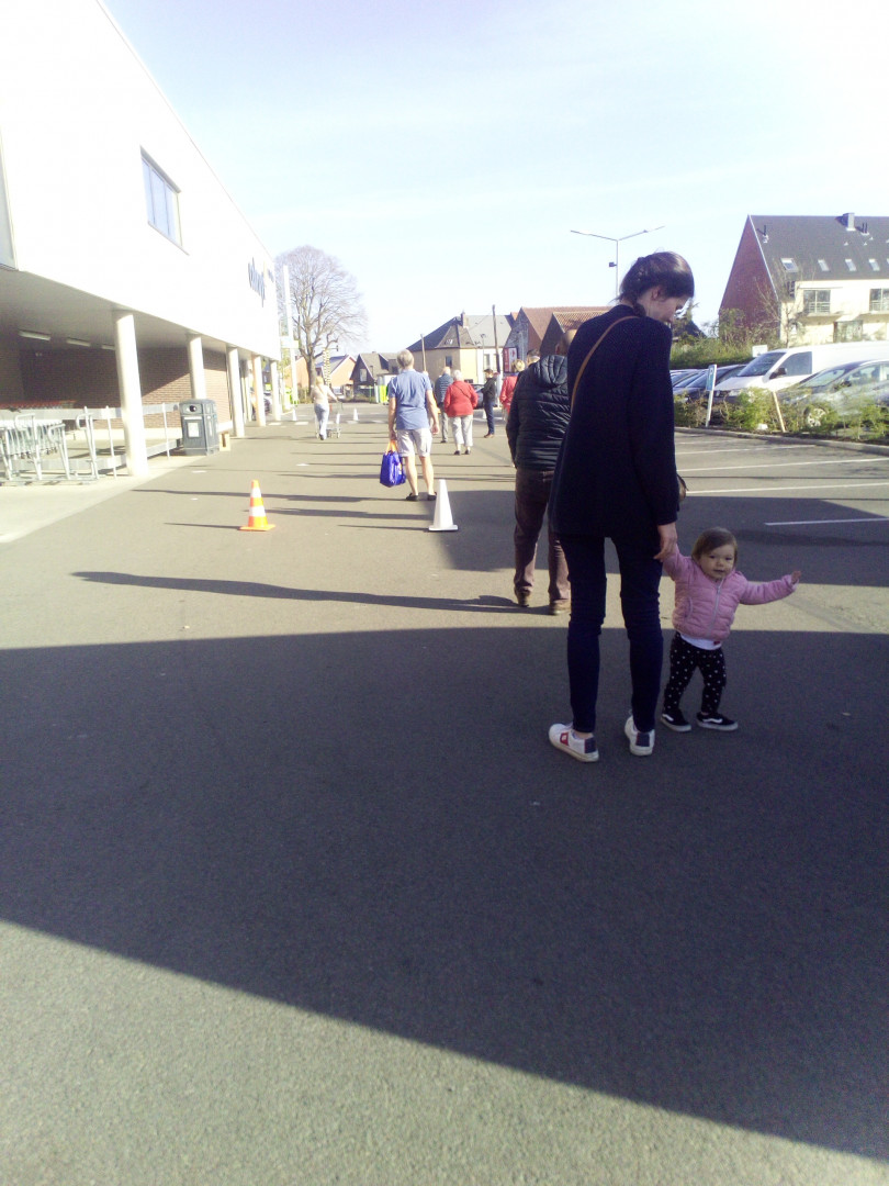 On, puolitoista metriä välit, jonon kärjessä myyjä antaa desifioidut kärrit, sisään sitä mukaa kun joku tulee ulos.