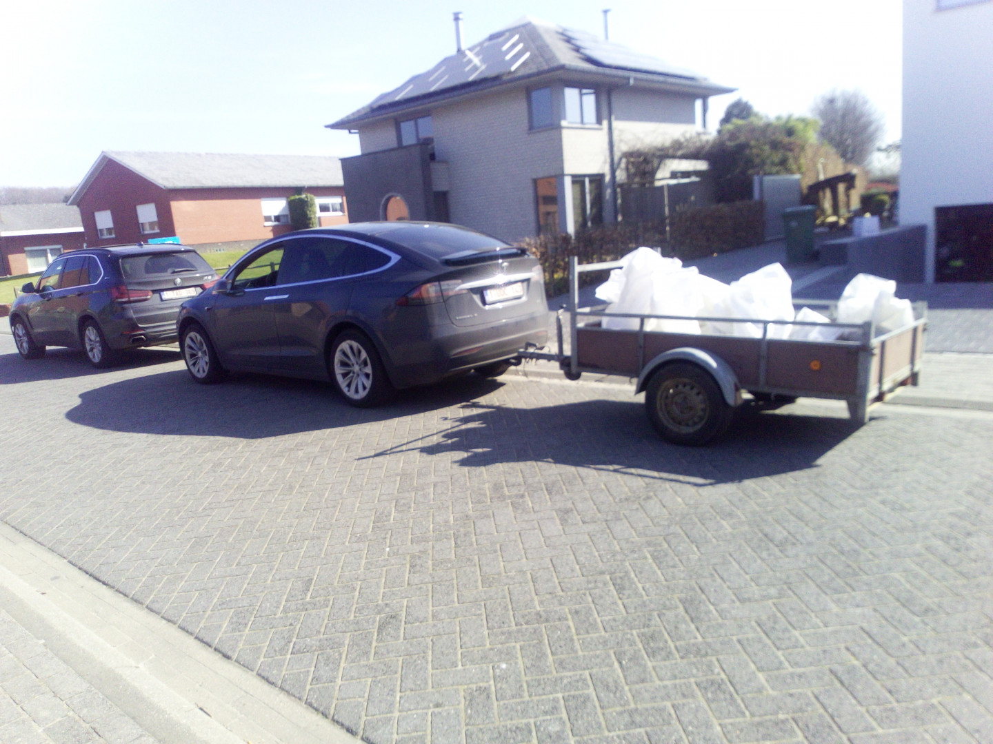 Bongattu Tesla kärrin vedossa, ajoi pikkasen aikaisemmin ohi eli veti oikeasti kärriä ;)