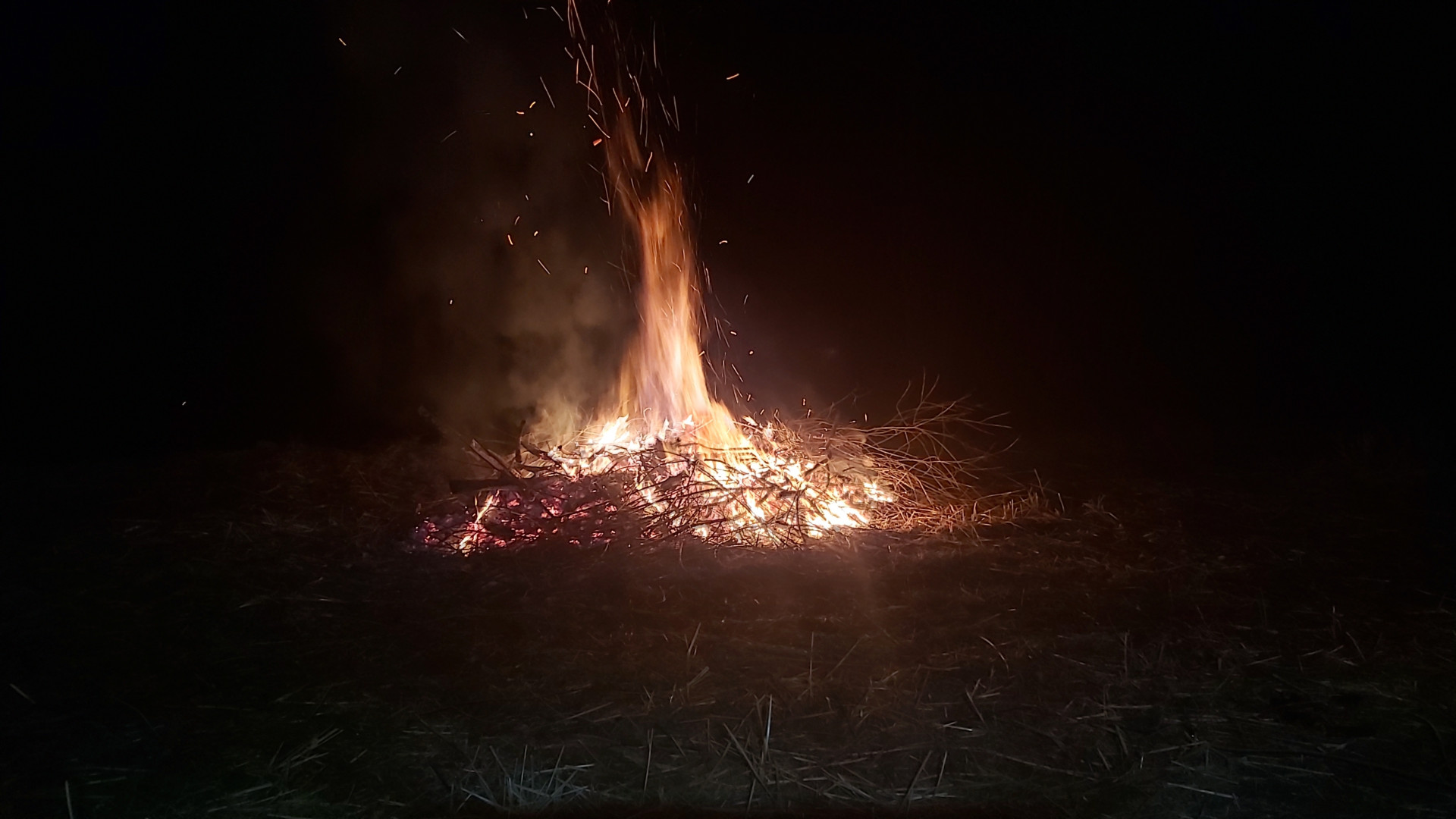 Tuon jäläkehen sitte alakoo se homma. Elikkä pitkävartisella hangolla piti heitellä valakiahan reunoolta palamatta jäänysiä oksia. Tuo valakia kun on vilijelypellolla niin iso halu on että kaikki palaas pois. Olis sitte kylyvöaikahan vähemmän murheeta kun ei tartte jäläkiä siivota.