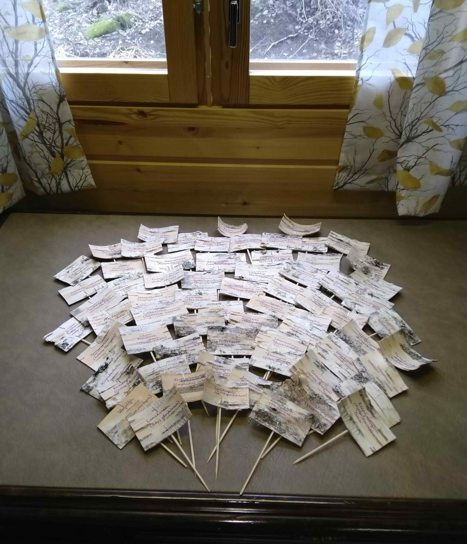 Luontotontin perennoille nimikylttejä yhdessä rouvan kanssa  :-*