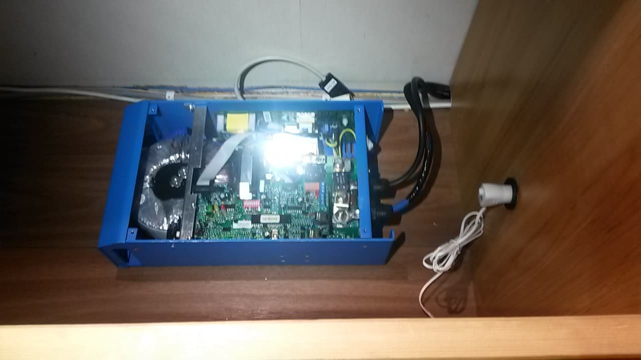 Invertterin asennusta sängyn alle, metrin johdot tuli akuilta.