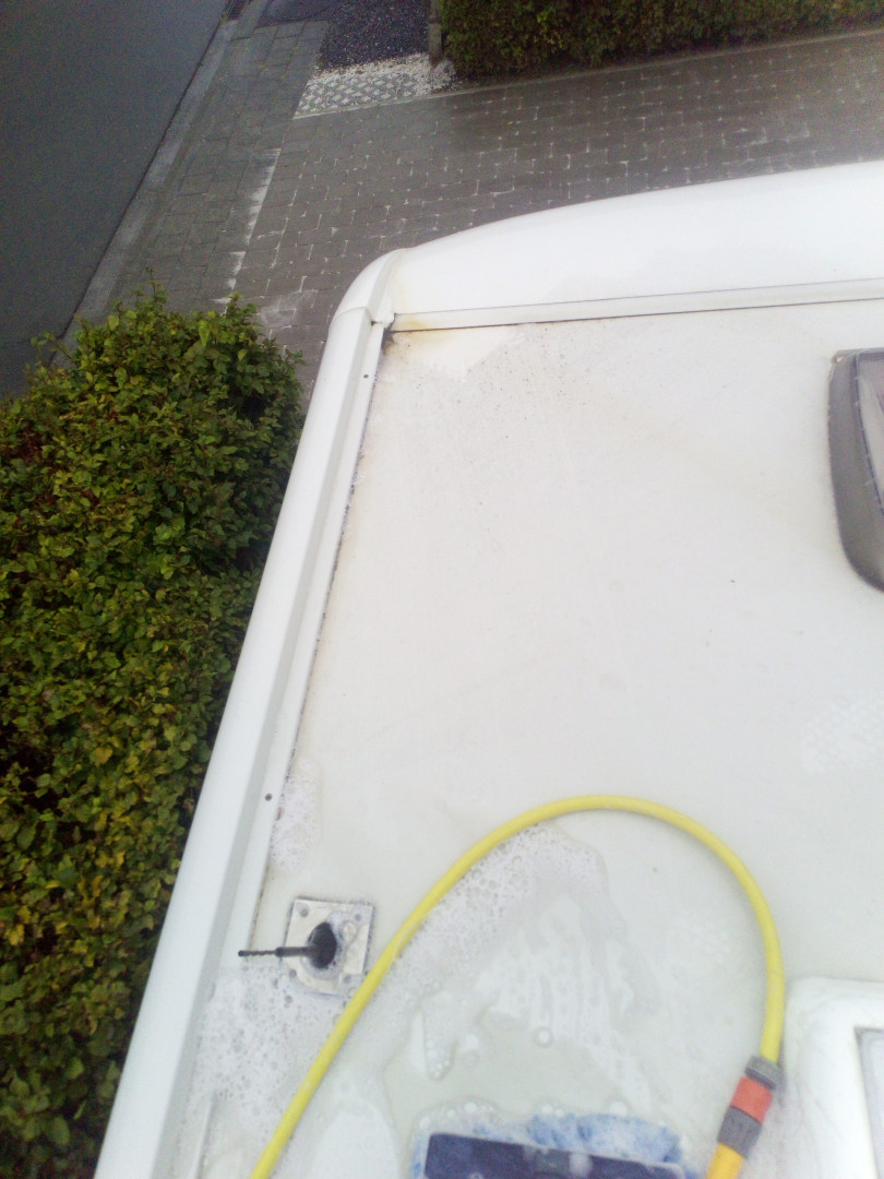 ja lopuksi katto puhtaaksi. Katto olikin pesty viimmeksi kesäkuussa ;)