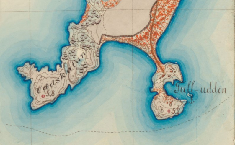 Uddskatan on toki aikanaan ollut Tulliniemen eteläisin kärki, mutta 1800-luvun lopun kartassa nykyisen tulliniemen itäisen haaran muodostava saari on jo maan kohoamisen myötä liittynyt Tulliniemeen kapealla hiekkakannaksella.