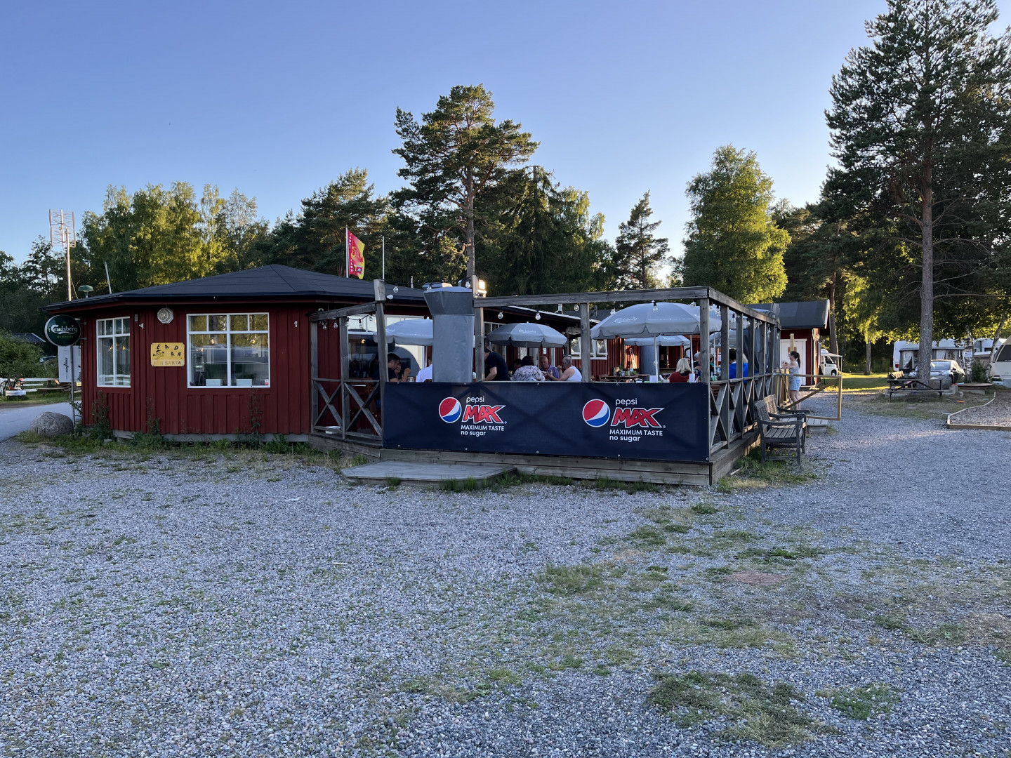 Viimeinen paikka saatiin. Olivat tehneet kaksi stellplatsia tähän portin ulkopuolelle. Tilavampi tässä kuin karsinan sisällä ja hinta halvempi.