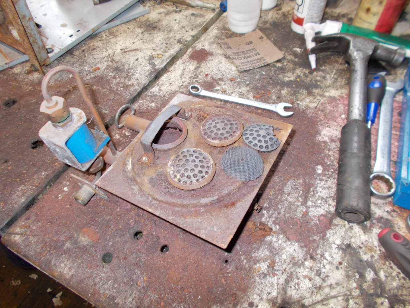 Ei tänään mutta viime keskiviikkona. Viimeinkin sain kaverin primus pannun käsiin että alettaisiin kunnostaan se ja laitettaisiin kipinäsytkä mutta eipä tarvinnutkaan edetä purkamista pidemmälle. Oli kohdannut jo tiensä pään tuo kun pohja aivan laho. Nuo polttimen ritilätkin pyöri irtaallaan jo. Myöskin se pannun ulkovaippa oli ruostunut puhki vaan tuonhan nyt vielä olisi pystynyt korjaan tai tekeen uuden. Joutuu kaveri metsästään ehjän pannun että saa taas vaunun lämpiään kaasulla. No jäi tuosta sentään kuitenkin sille joitain varaosia.