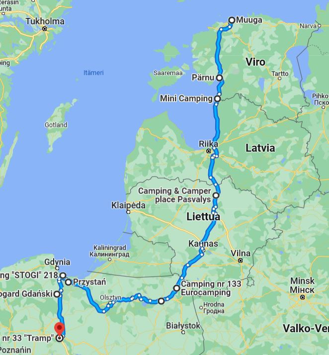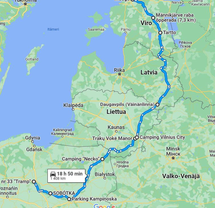 Latvian ja etenkin Liettuan alemman luokan tiet on aika karseassa kunnossa. Vanhaa huonokuntoista betonitietä ja semmoista ryskettä että autosta varmaan jokainen ruuvi löysällä.