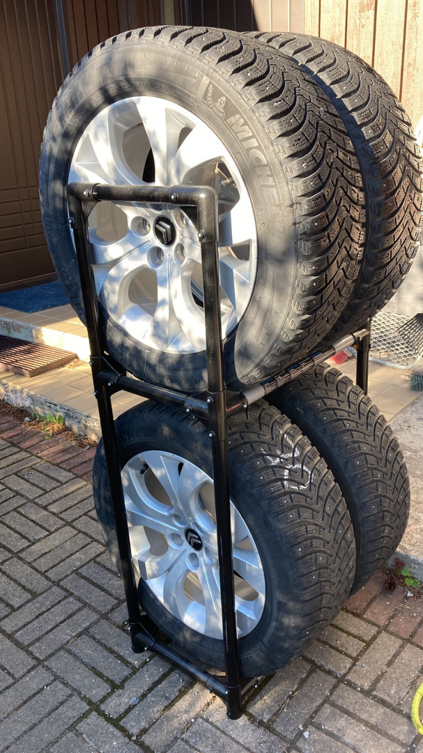 Keväällä tuli pestyä talvirenkaat vain painepesurilla. Nyt oli vuorossa tarkempi puhdistus. Ovat ihan hyvässä kunnossa vaikka olleet käytössä jo 11 vuotta.