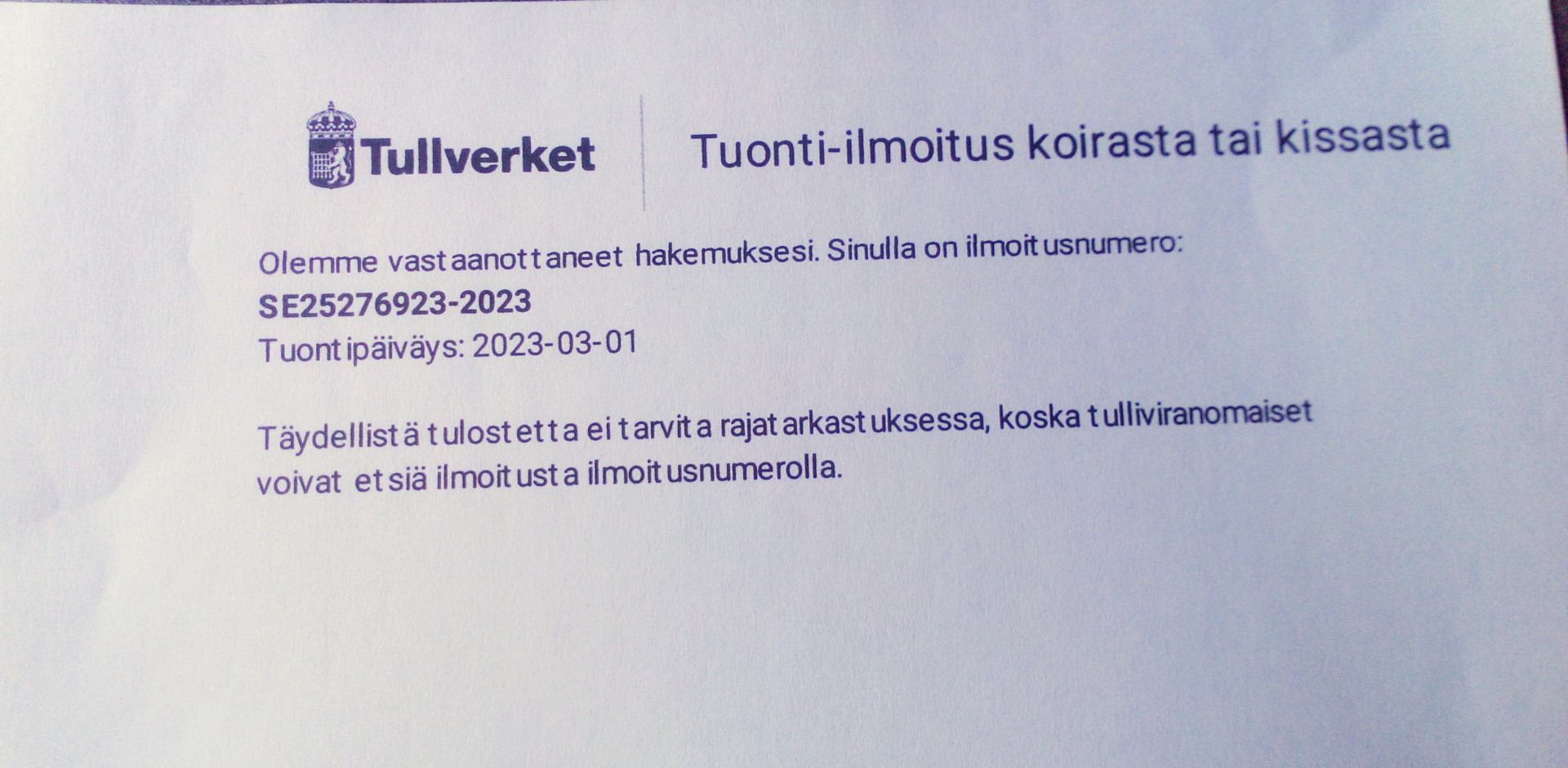 Tiedote rekisteröitymisestä