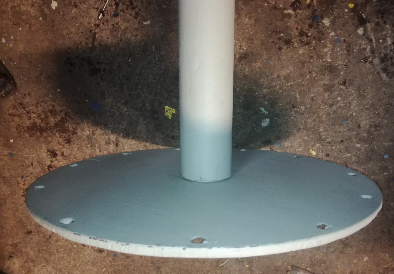 Nämä putket palveli aiemmin portinpylväinä. Pyöreä levy lämminvesi varaajan luukuna.