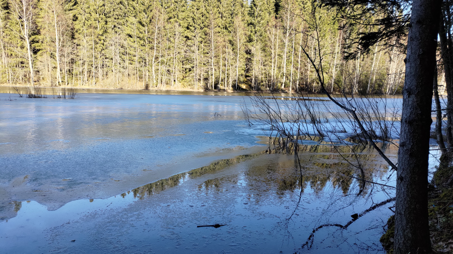 35 vuorokautta sitten oltiin täällä jäitä pitkin. Mökkinaapuri taisi kulkea vielä pari viikkoa senkin jälkeen.