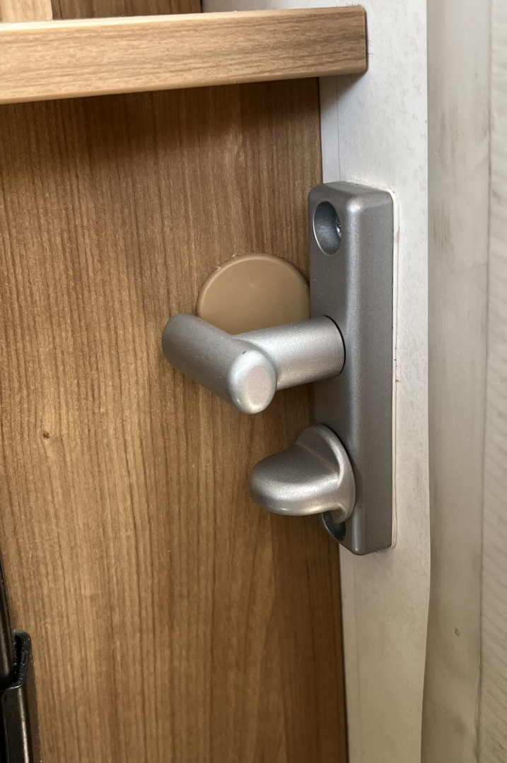 Tehtiin kaverin kanssa sapluuna pylväsporakoneella lankunpätkään, se puristimella kiinni seinään. Tuli porauksesta suora ja justiinsa eikä melkein kohdalleen ahtaassa paikassa. Minkään muun mallin lisälukko ei tuohon sovi. On myös sisältä käytettävä, kuten kuvasta näkyy, mutta vähän hankalassa paikassa. Etenkin jos roikkupeti on alhaalla.