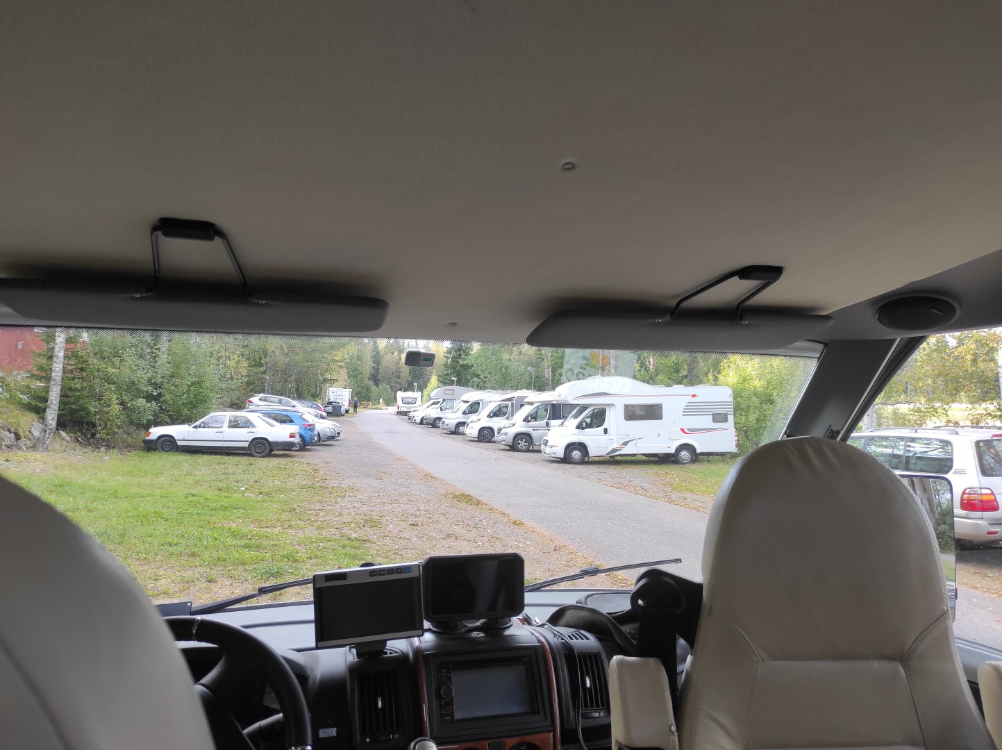 Tyhjetelin kulkimen ruokatarvikkeista ja juomista. Vedet laskin pois ja akun laitoin lataukseen. Asunto-osan penkinpäälliset on pesussa.