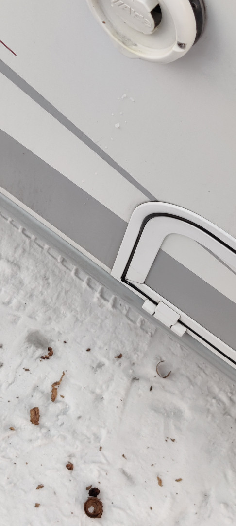 Eikun kansi auki ja lisää tuli. Tummunut mehiläisen (tms) pesä *prkl*, maalla asumisen riemuja  :-\