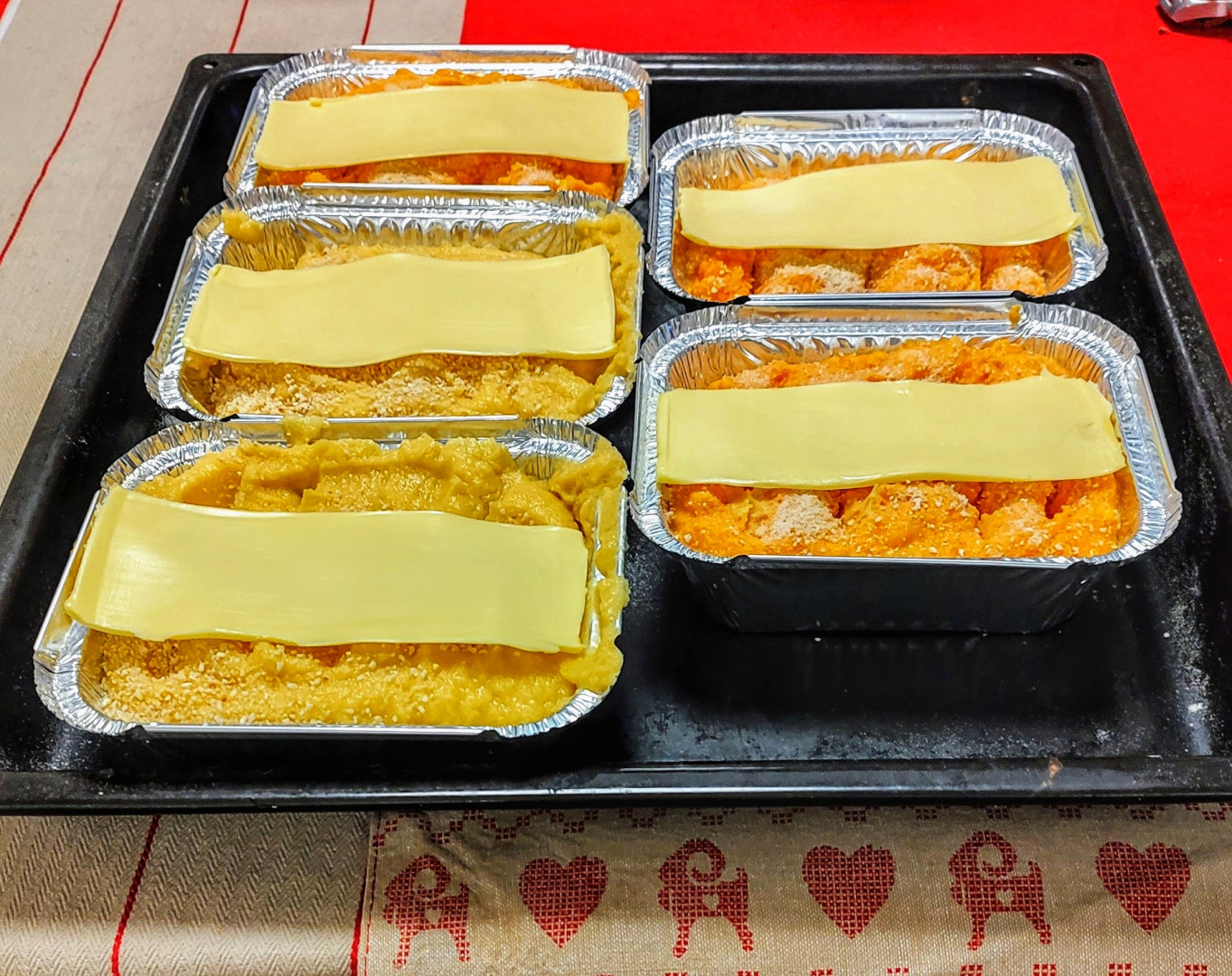 Vähän aloiteltiin laatikoita tekemään. Lanttu- ja porkkanalaatikot. Imelletty perunalaatikko sitten myöhemmin, jota kuluu eniten, eli sitä pitää tehdä reilusti.  Thumb