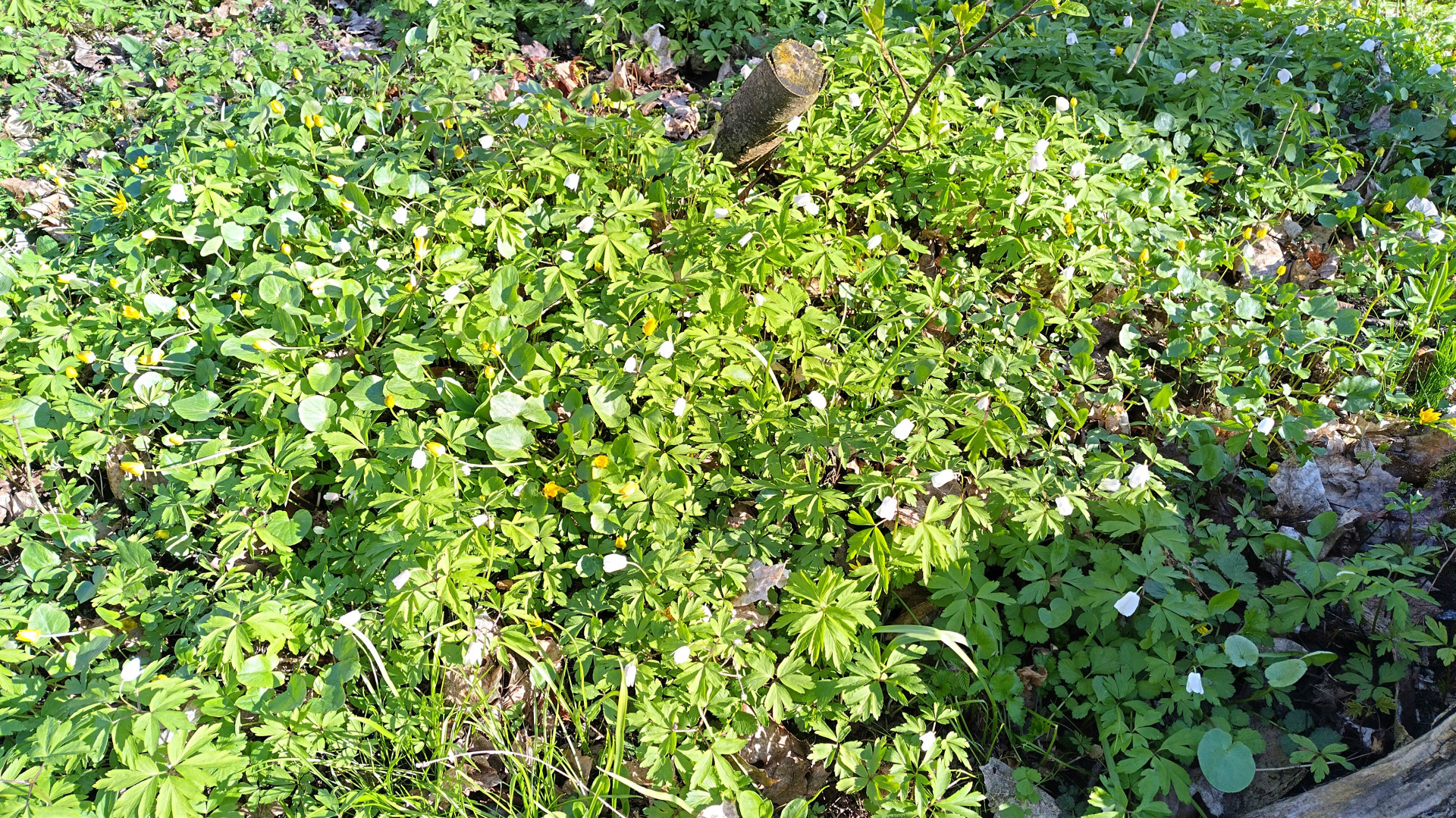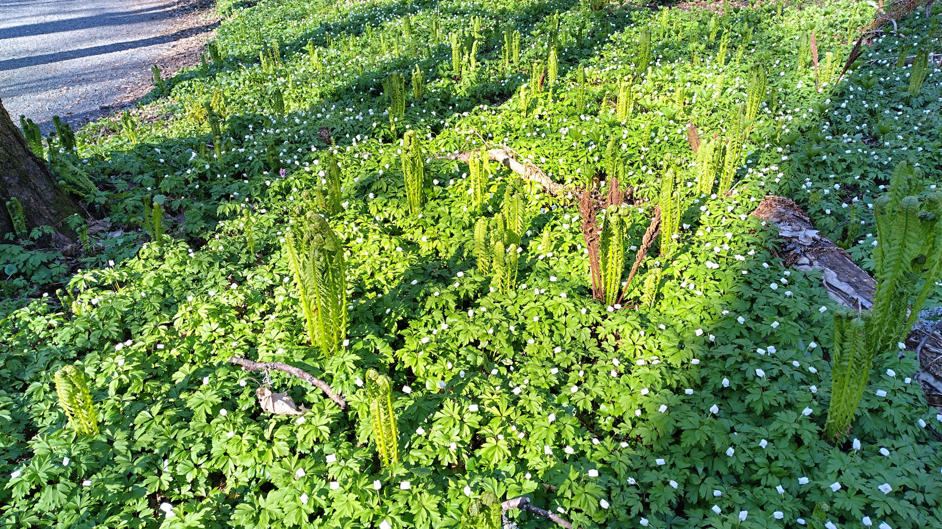 Ramsholmenin kiersin, siellä plus 3 mutta valkovuokkoja sekä kasvavia saniaisia todella paljon.